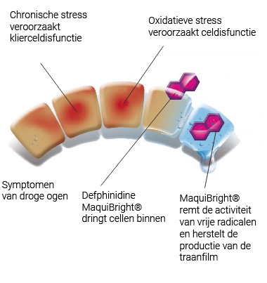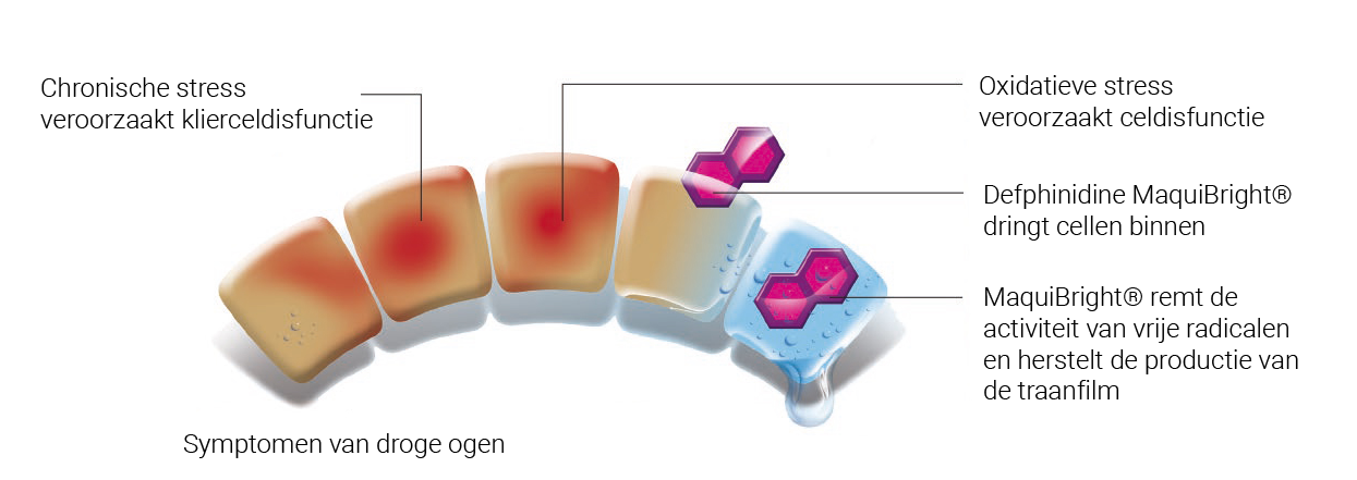 De werkzaamheid van MaquiBright® is bevestigd in een preklinische studie** onder twee groepen met matig droge ogen. Deze groepen namen MaquiBright® in een dosis van 30 en 60 mg gedurende een periode van twee maanden.